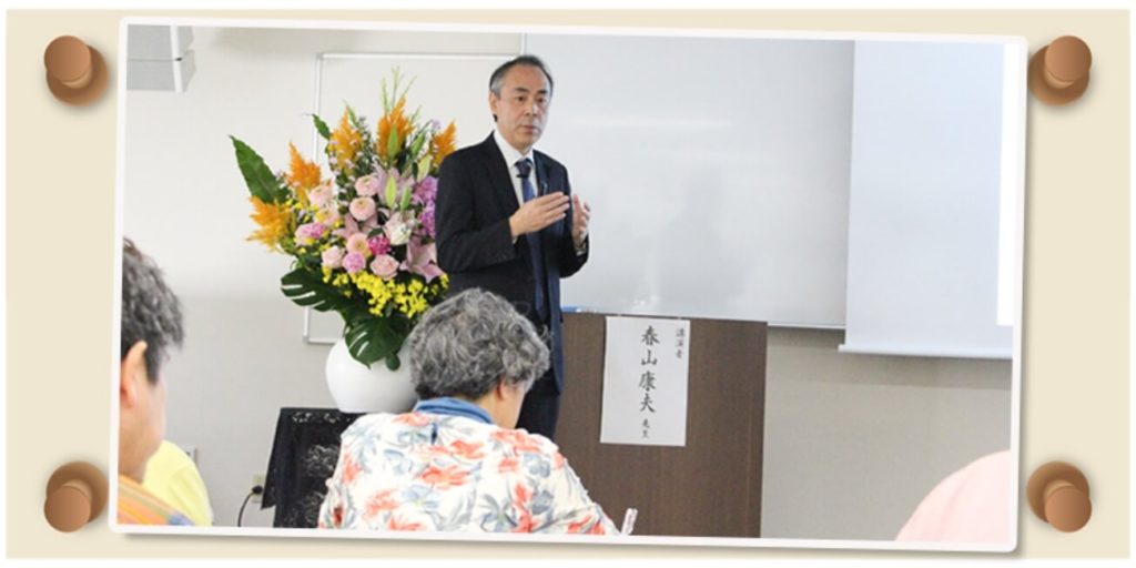 これからの人生を健やかに送るために役立つ健康づくりについて、上海で中国医師をしたのちに本国で公衆衛生学を修めた春山先生から、東洋医学の基本的な考え方やそれを踏まえた実演を交えながら学ぶことができました。