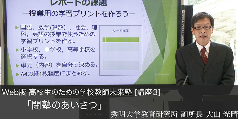 講座番号2「教師になるにはどうしたらいいか」「教員の職務と待遇」