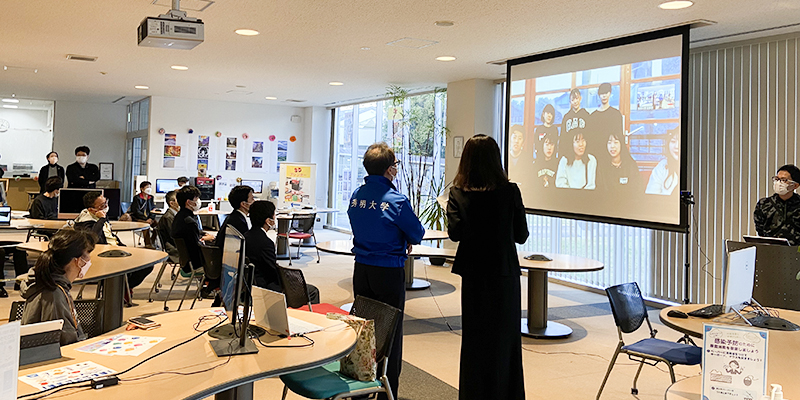 秀明ホール会議室では、着物を着た学生によるお点前の披露、道具やお菓子の展示、お茶を点てる作法について皆さんに紹介し、奥深い茶道の魅力を感じていただきました。