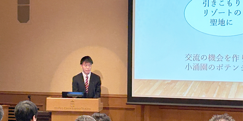 本選では8組がプレゼンテーションを実施し、本学から選出された3組のうち、フードロスをテーマにしたユニークなアイデア「DEBUET HOTEL ~お腹と心が食と触れ合い 食品ロスも楽しく解決~」が、特別賞を受賞しました。