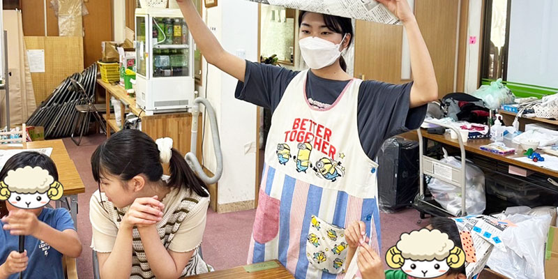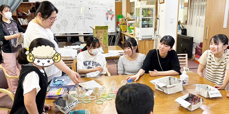 ボランティアサークル「LIBERTE」の学生7名が、地域貢献活動として八千代市の子ども食堂でイベントを開催し、子どもたちと一緒に「ペットボトルで風鈴づくり」と「新聞紙で兜づくり」を行いました。