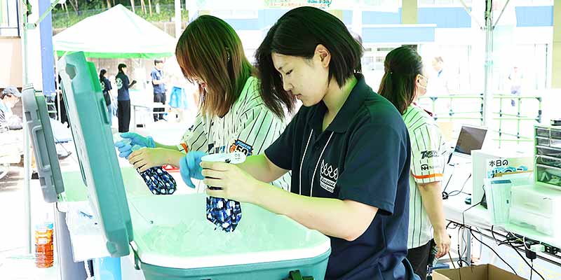 今年は、観光ビジネス学部の授業「地域観光振興論」の受講者が、インターンシップに参加し、ファンクラブブースなどの仕事を体験しました。今後このフィールドワークで得た体験をもとに、イベント時の集客戦略方法などについて、ターゲットに合わせたアイディアをまとめていくようです。