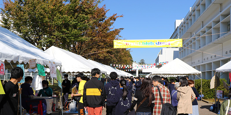 個性溢れる屋台では、大流行したタピオカミルクティーや留学生の作るエスニック料理、沖縄出身学生の作る沖縄料理、出来立ての唐揚げや焼きそばなど、どれも大人気でした。年々レベルアップしているアカペラストリートライブは今年も盛り上がりを見せていました。