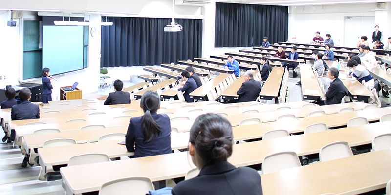 教師として活躍中の学校教師学部卒業生を講師として招き、実際に教壇に立って感じたことや、日々の悩みなどを熱く語っていただきました。