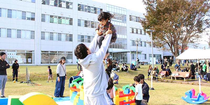 毎年子供たちに大好評の秀明キッズ・パーク。教師を目指している学生が遊具ごとに面倒を見て安全面に配慮しており、たくさんの親子連れで賑わいました。