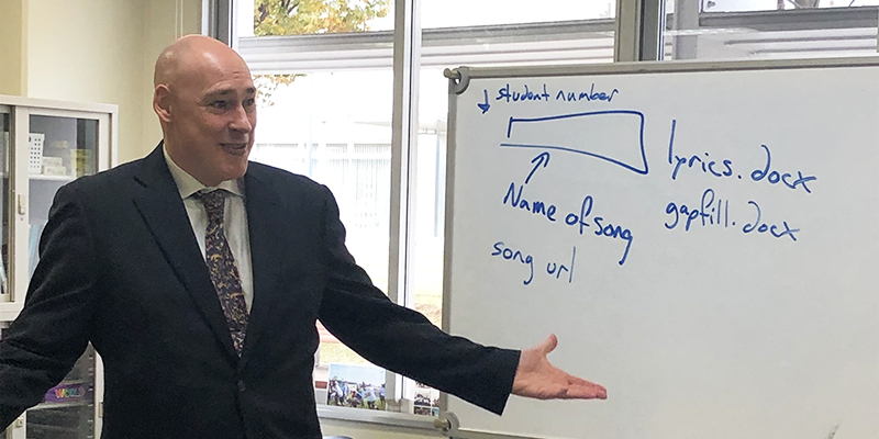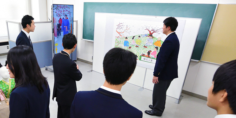 イギリスのチョーサー・カレッジ・カンタベリーと本学を結んで行われたビデオ座談会。学生たちは久しぶりに会うカレッジの教職員と英語で会話し、成長した姿を見せました。