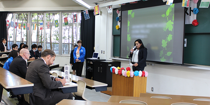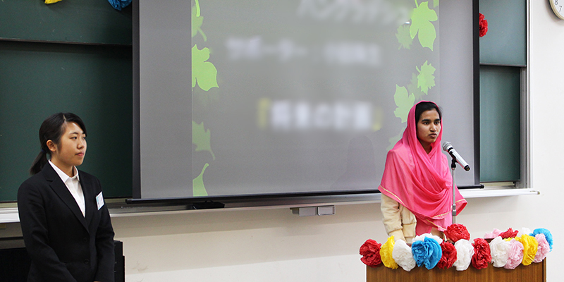 様々な国の学生が参加し、外国語を駆使して自己を表現しながら語学スキルを披露。民族衣装披露会も行われ、会場は大いに盛り上がりました。