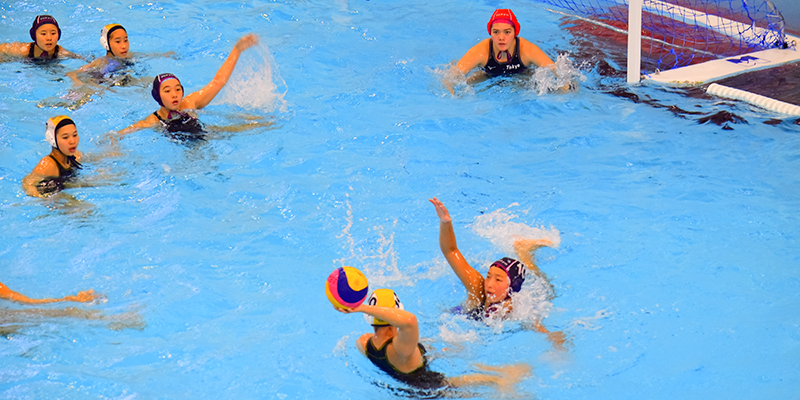 秀明大学水球クラブは、在学生・卒業生を中心とするチームで、日本選手権を4連覇し、日本女子水球界の女王となりました。2020年東京オリンピック正式種目である水球の試合を生で観戦してみたい、と多くの観客が訪れ、両チームとも白熱した試合となり大変盛り上がり、2日目の午前には、千葉県高校選抜 対 東京都高校選抜の試合が開催され、若々しい迫力ある高校生の試合となりました。