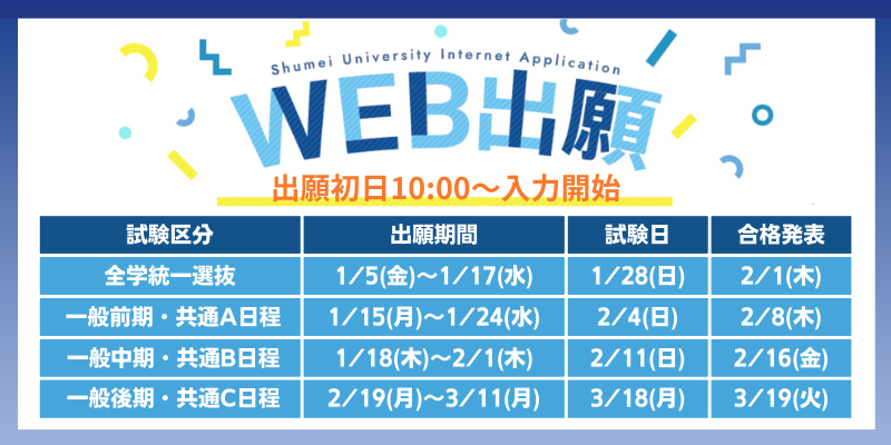 ・本学はインターネット出願です(出願初日10:00から入力開始)。