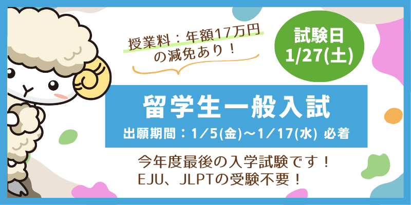 ※日本語能力試験、日本留学試験の成績による筆記試験免除はありません。