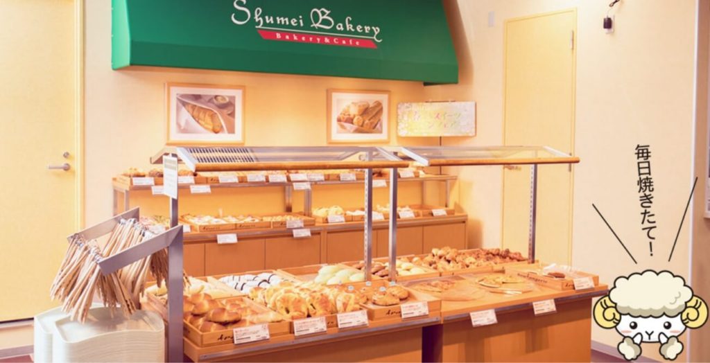 カフェテリアには焼き立てパンのお店があり、ランチタイムや休憩時間に学生が集う場所となっています。