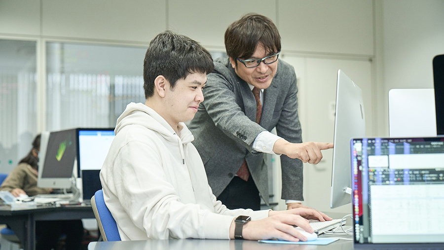 プログラミングについて深く学びます。Pythonというプログラミング言語を利用し、ゲームの制作やRaspberry Piを使った電子工作・デジタルアートなど各々のテーマを進めていきます。また、進学を希望する学生には大学院向けの研究指導も行います。