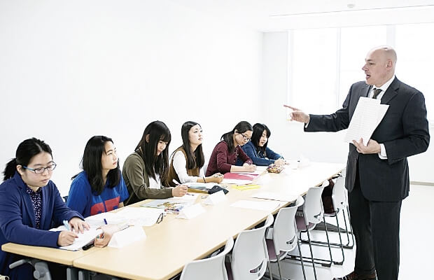 看護学部は、1・2年次に英語7科目が必修となります。1年次の「看護英語基礎」では、医療・看護英語の効果的な学修方法や診療科の名称など必修の専門用語を学びます。2年次の「看護英語リーディング」では、患者さんの英文症例報告を読み、症状や既往歴、検査結果などを示す表現を学びます。同時にナイチンゲールやイギリスの医療制度、日英の病院の違いなどを調べ、3年次のイギリス留学へ向けた予習を行います。